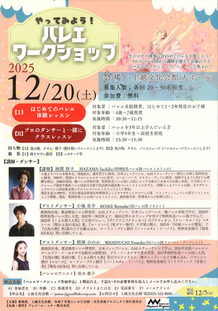 12月20日(土)、上越文化会館 大ホールにて、生のピアノ演奏に合わせてバレエを楽しむ「やってみよう!バレエワークショップ」を開催します。