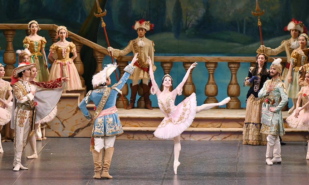 チャイコフスキー作曲の三大バレエの一つ「眠れる森の美女」は、シャルル・ペローの童話を元にした美しく優雅な舞台で、クラシックバレエ最高峰と謳われる傑作です。妖精の魔法で100年の眠りにつくオーロラ姫。そして、彼女を眼覚めさせる王子のキス。華やかに繰り広げられる結婚式には、<青い鳥><長靴をはいた猫><赤ずきんちゃん>など、数々の童話の登場人物や妖精たちが祝福に訪れます。幼い頃に誰もが親しんだ物語の世界そのままに、200着にも及ぶ豪華な衣装や壮大なセットが100年の時の流れを彩り、舞台上に壮麗な宮廷絵巻を創り上げます。